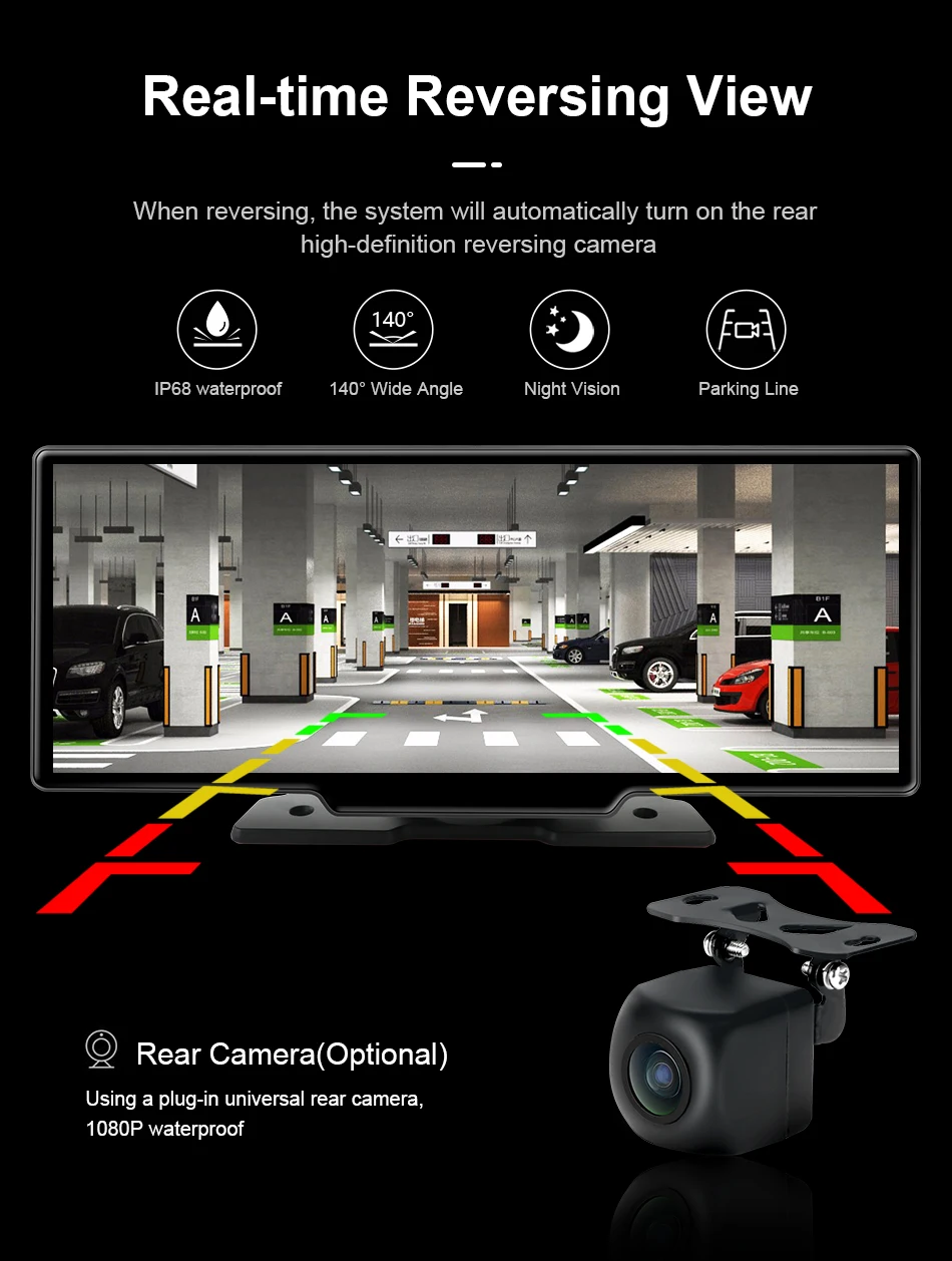 【1080P HD Reverse Camera for Car】 Equipped with a 170° ultra-clear wide-angle rear view camera and dynamic parking guidelines, powerful night vision and IP65 waterproof, ensuring crisp visibility day or night while minimizing blind spots.