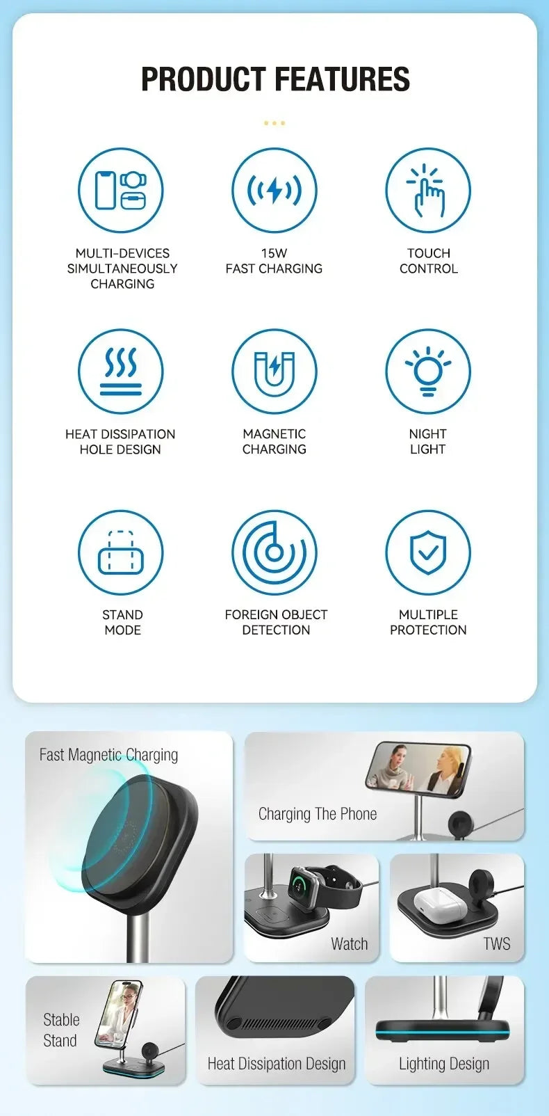 Features: Multifunctional,With Cable,for Multiple Devices,With Holder,With Lamp,Magnetic Wireless Chargers