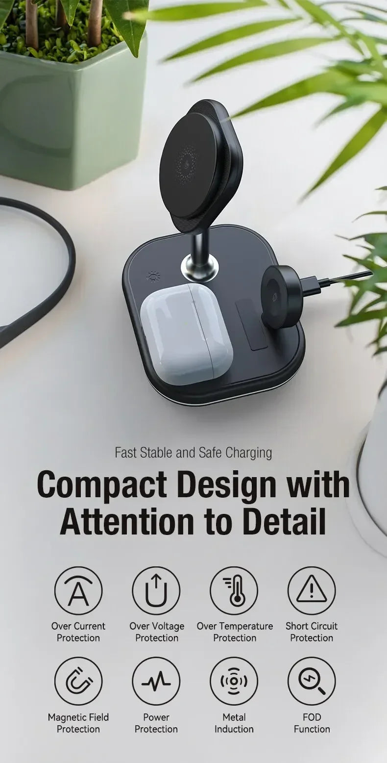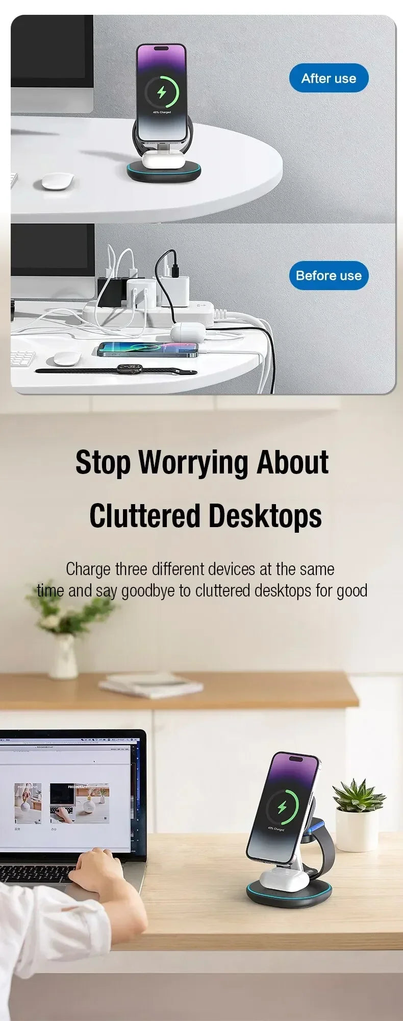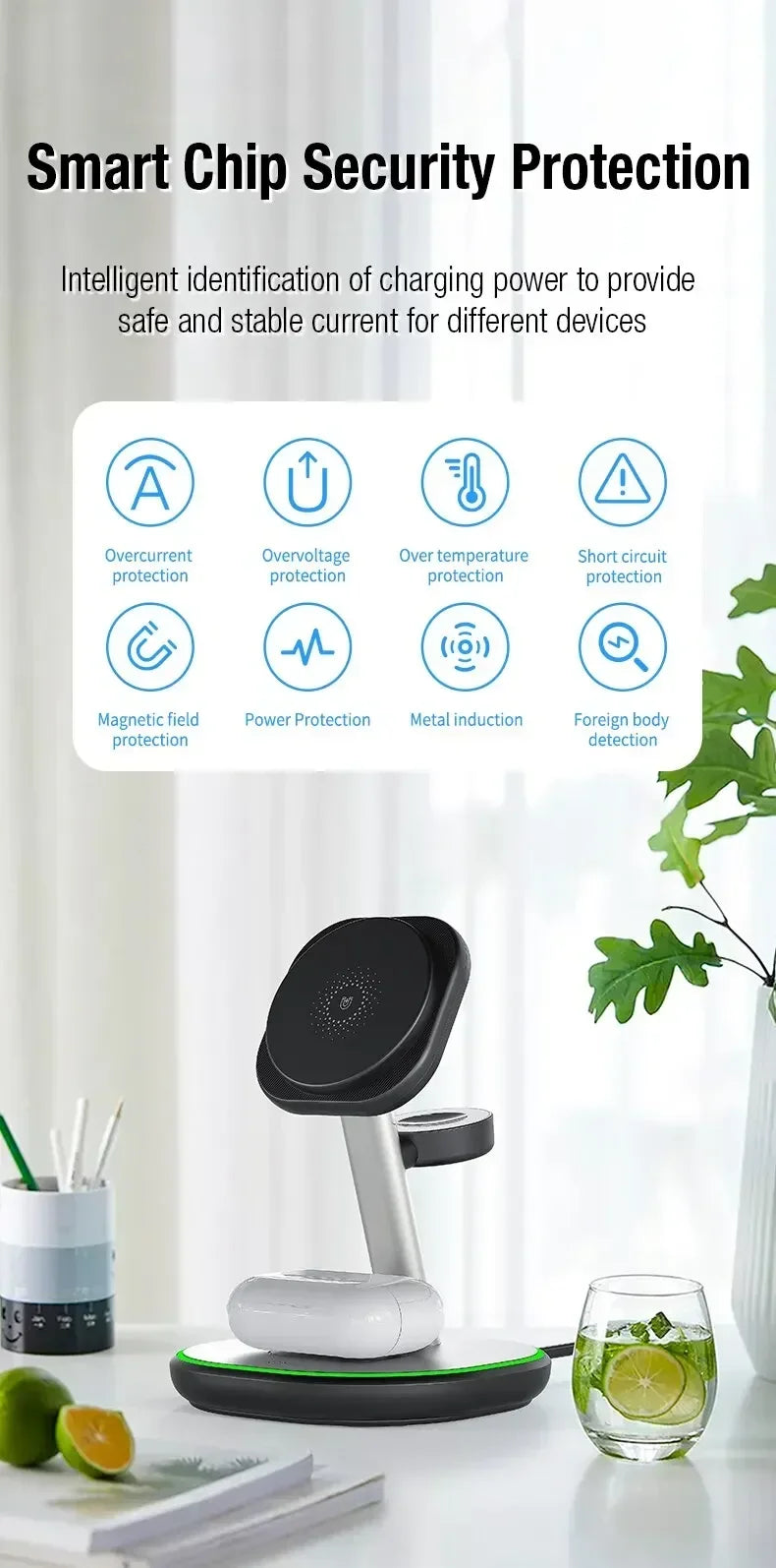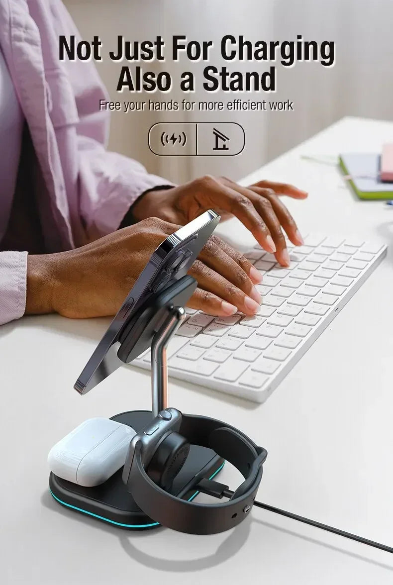 3 In 1 Magnetic Wireless Charger Stand For Magsafe iPhone 16 15 14 13 Pro Max Apple Watch 9 8 AirPods Pro Fast Charging Station