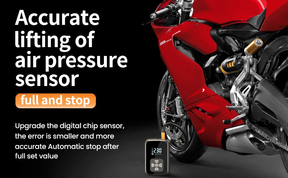 Keep your tyres properly inflated wherever you go with this portable electric air pump. Perfect for cars, motorcycles, bicycles, and sports equipment, this wireless inflator eliminates the hassle of finding petrol stations or dealing with manual pumps.