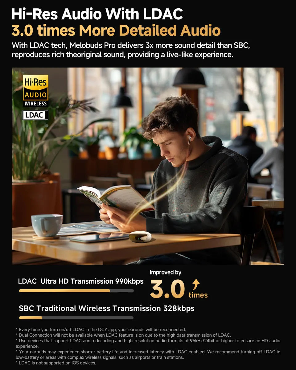 Designed with adaptive ANC technology that intelligently adjusts to your environment, these earbuds effectively eliminate ambient noise while delivering crisp, detailed audio through advanced LDAC encoding.