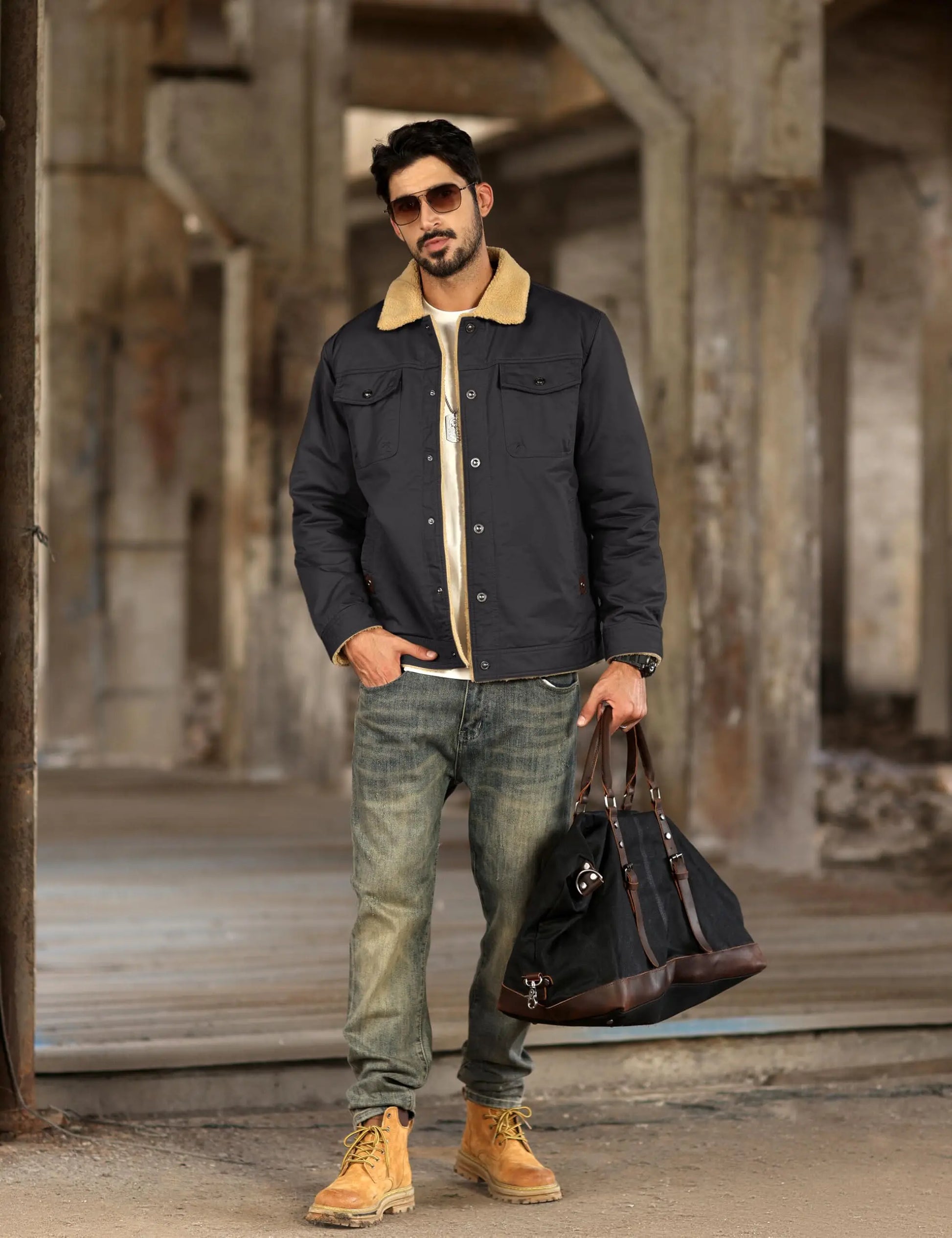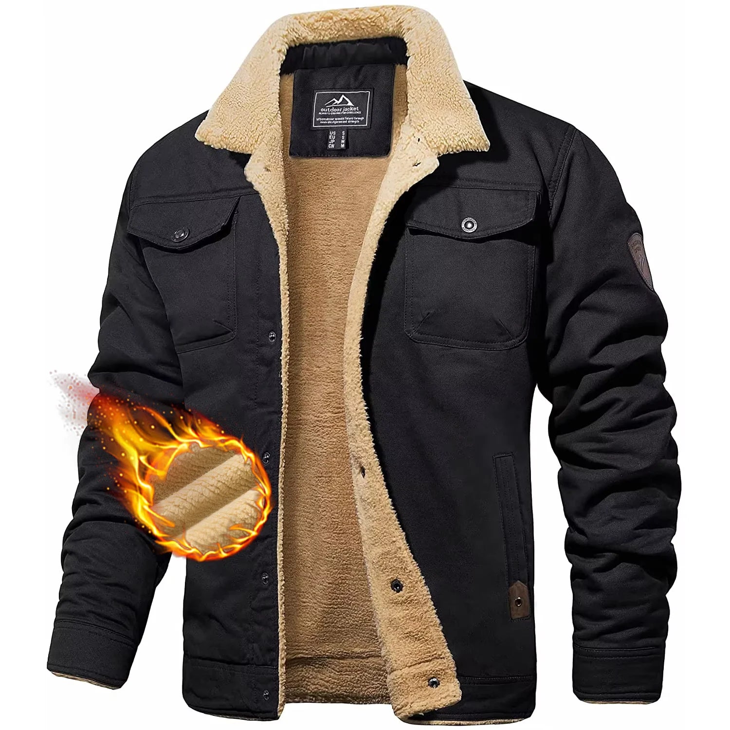 Men's Winter Cotton Jacket - Sherpa Fleece Lined Trucker Coat